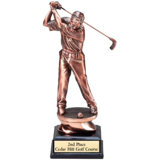 Resin awards and traditional trophies come in many different shapes, sizes and designs. Specify your sport, academic or activity to view narrow the many choices that are available. Some resin awards can hang on the wall like a plaque. Resin trophies come in a wide variety of designs. FREE Engraving.