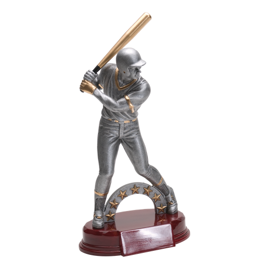 Resin awards and traditional trophies come in many different shapes, sizes and designs. Specify your sport, academic or activity to view narrow the many choices that are available. Some resin awards can hang on the wall like a plaque. Resin trophies come in a wide variety of designs. FREE Engraving.